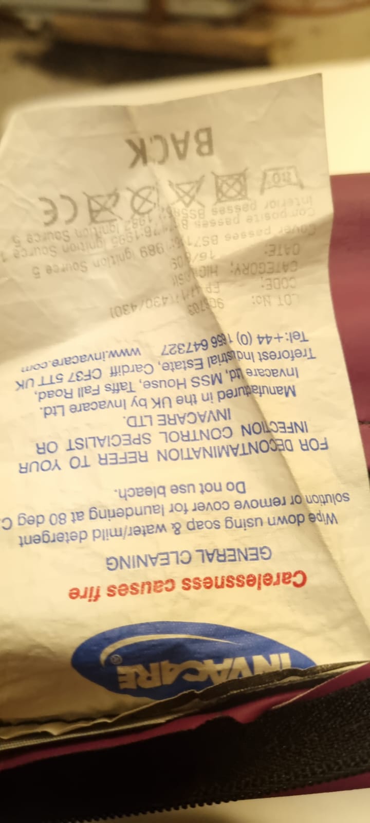 1x Used Invacare Flo-Tech seat cushion 45×45